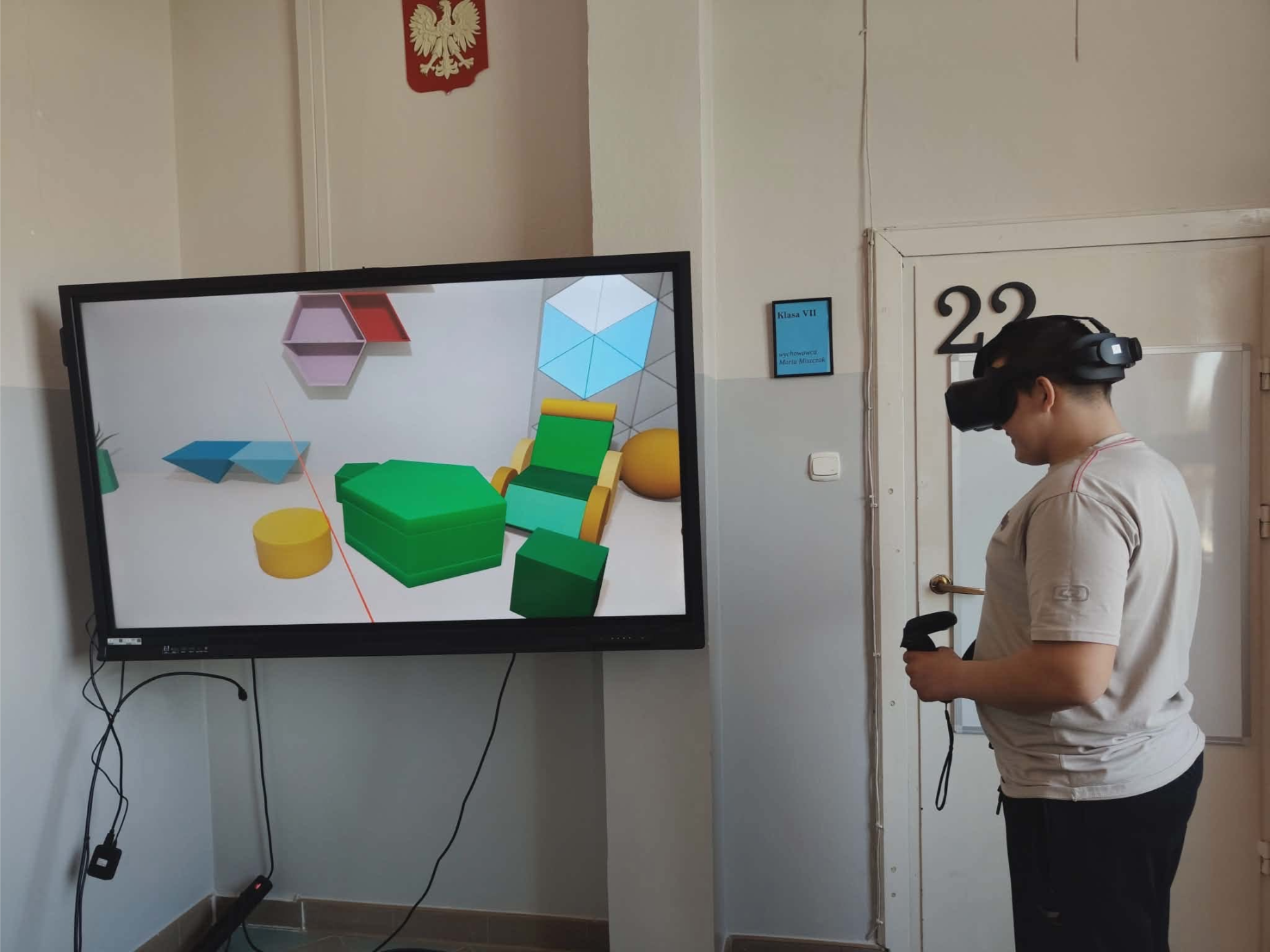 Obserwowanie tego procesu w technologii VR pozwoliło uczniom łatwiej zrozumieć zależności między siatką bryły a bryłą.